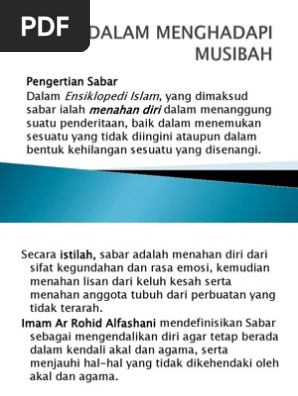 Makna Kata Sabar Berarti Menahan Dan Mengekang Sabar Secara Etimologi Sabar Ash Shabar Berarti Menahan Dan Mengekang Secara Terminologis Sabar Berarti Menahan Diri Dari Segala Sesuatu Yang Tidak Di Sukai